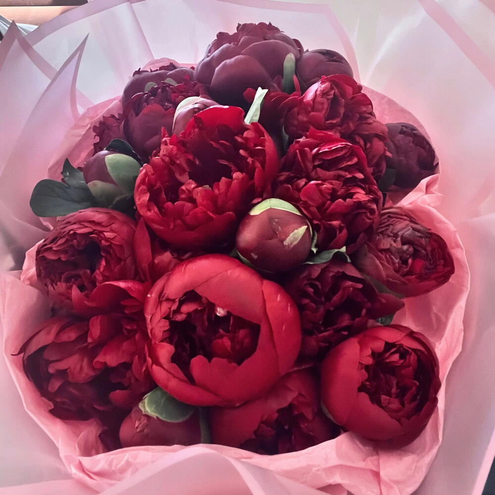 25 rote Pfingstrosen