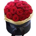 25 Red roses in a cute black box, an irresistible combination of colours and style. Amazing gift for your loved ones.