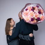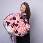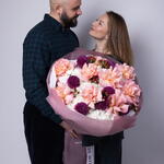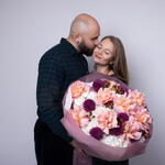 Букет красивый получился. Доставили немного позже назначенного времени, не критично для нас это было. Фото отчет сделали быстро. Доставка считаю дорогая, плюс большие розы не первой свежести были.