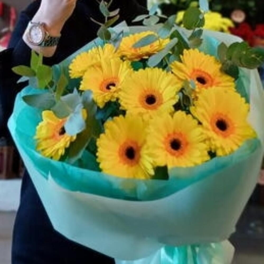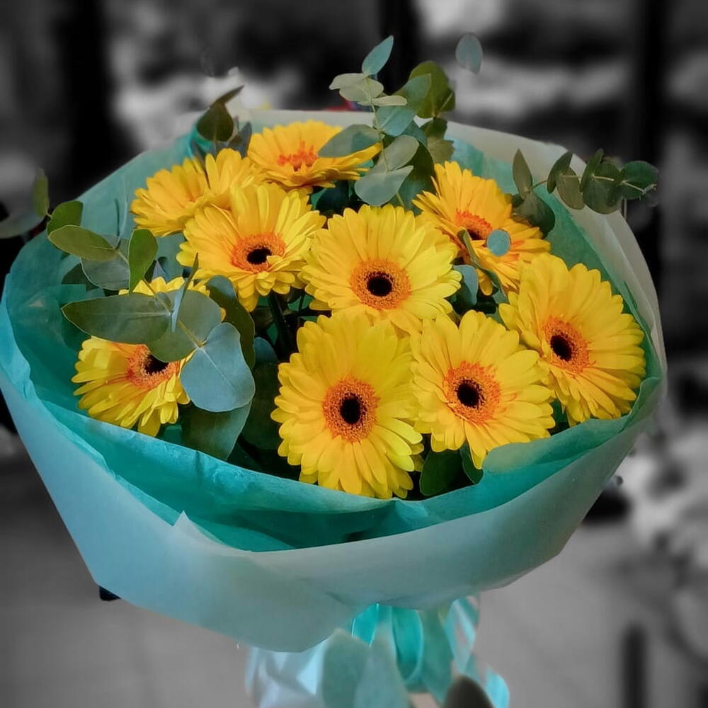 Eucalyptus - 2 Stk. Gerbera - 9 Stk.