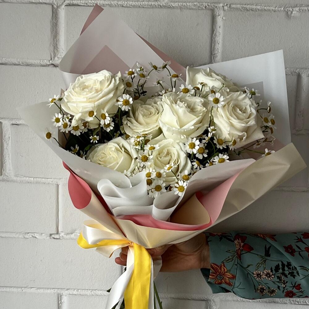 daisies - 8 Stk. white roses - 7 Stk.
