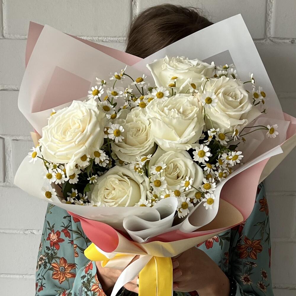 "For her" - white roses and daisies