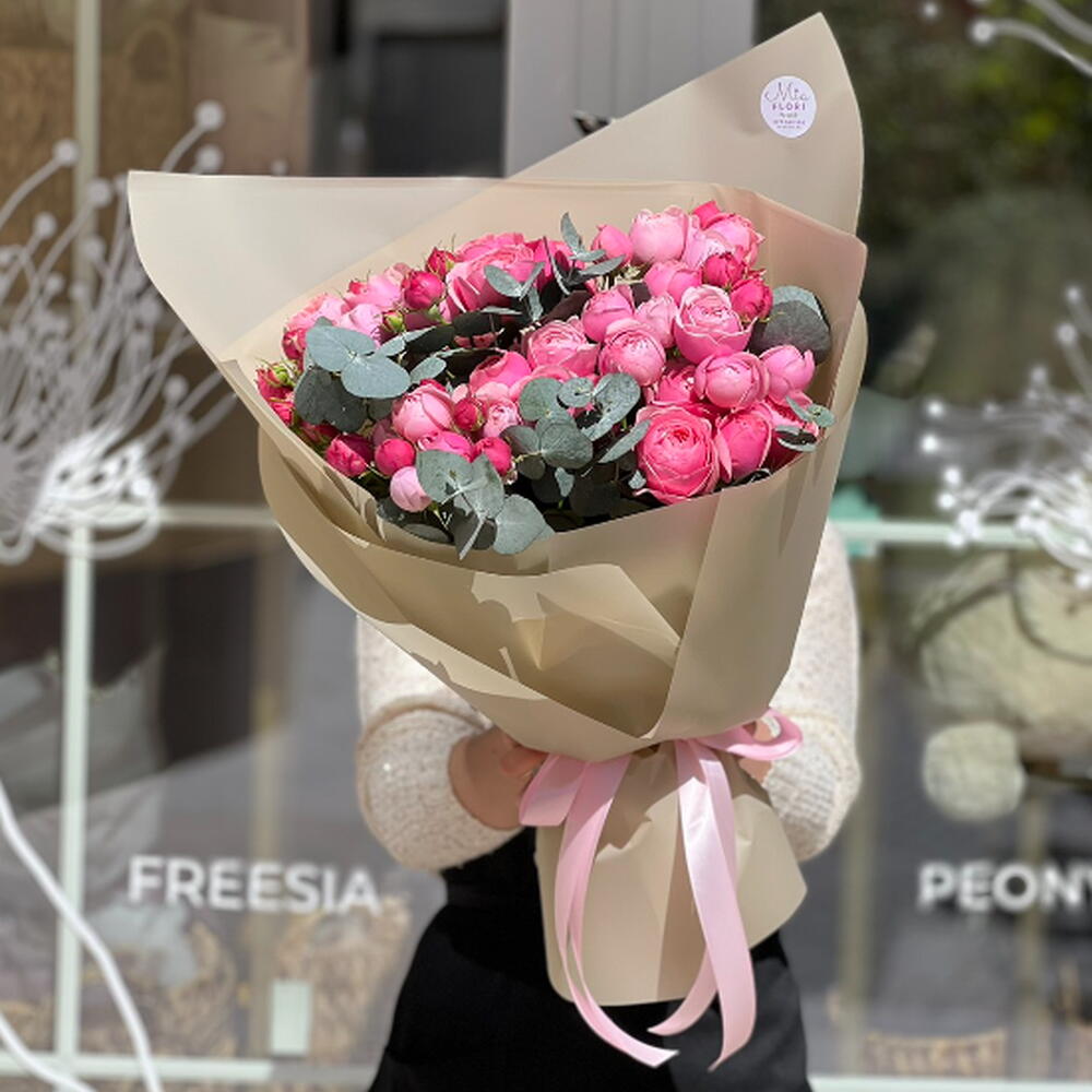 Букет из Silva Pink и эвкалипта - «Нежное послание»