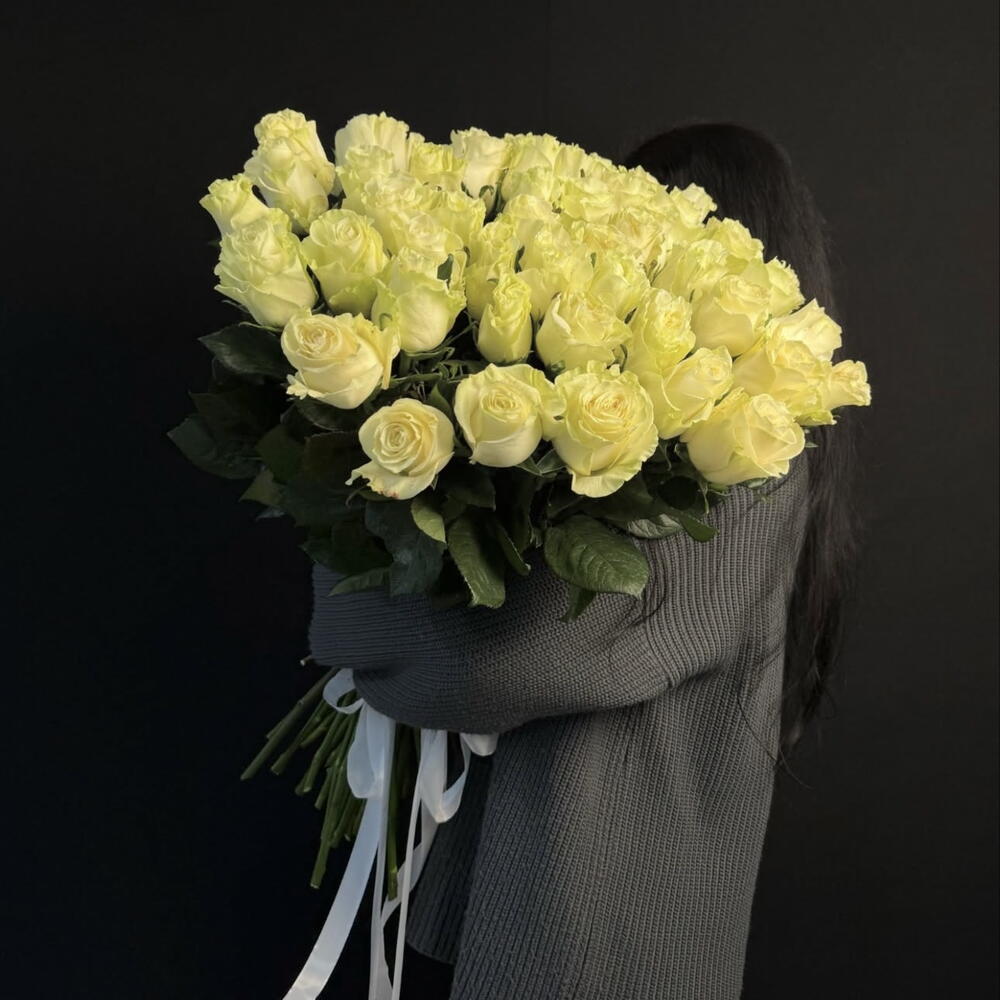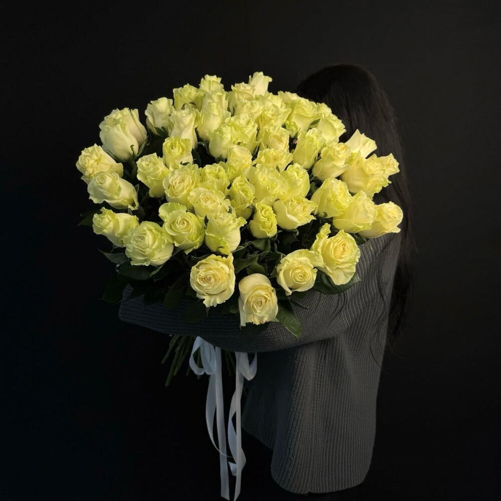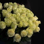 Bukiet z biało żółtych róż. Róża przy rozwijaniu staje się białą