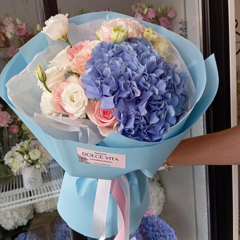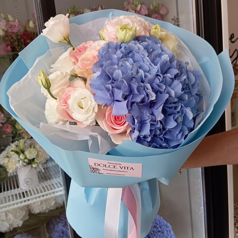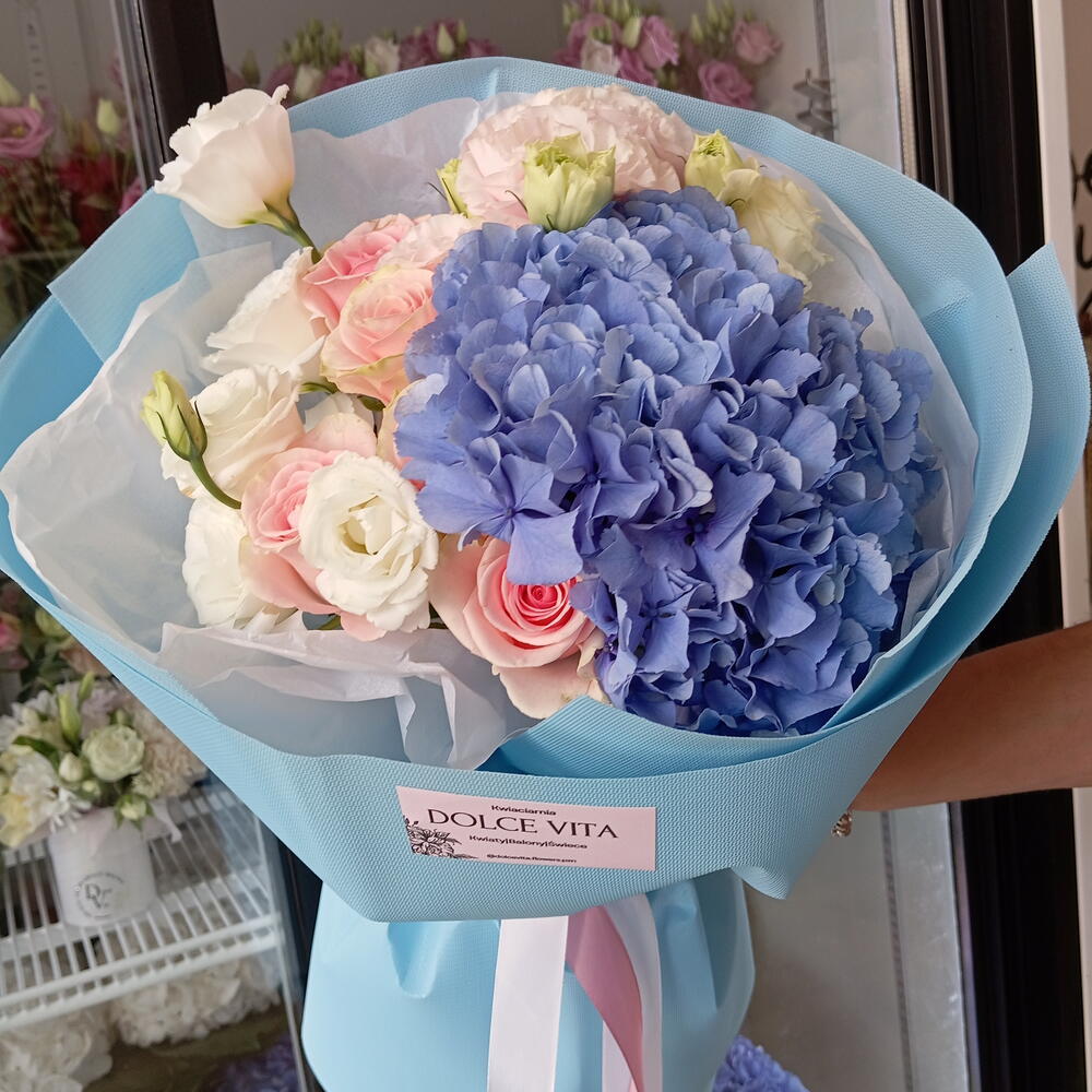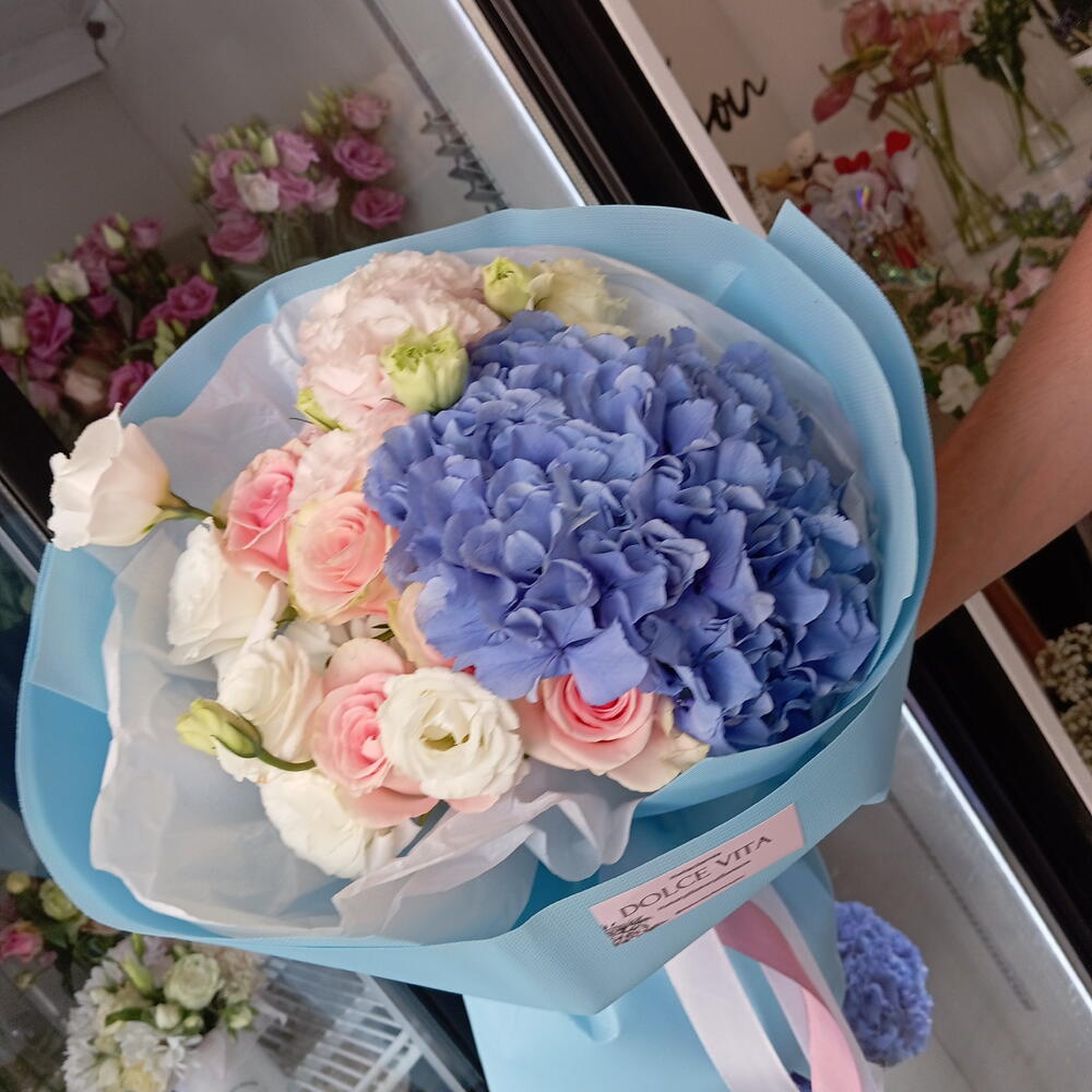 Rose - 5 Stk. Hortensie - 1 Stk. Eustoma-Mix - 4 Stk.