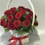 rote Rosen - 31 Stk. großer Korb - 1 Stk. Dekoratives Grün - 10 Stk.