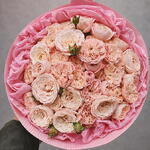 Dámský rozmar je buket tvořený kombinací dvou prémiových odrůd keřových růží: Royal Blush s krémově růžovými, kulatými pupeny, které působí aristokraticky a něžně, a Nynke – vzdušných pastelových růží ve svazku s lehce romantickým nádechem a jemnou texturou. Každý květ je pečlivě vybrán, aby výsledný celek působil harmonicky, luxusně a dokonale vyváženě. Přestože je kytice kompaktní, její půvab a výjimečnost jsou nepřehlédnutelné a dává pocit, že každý detail byl vytvořen skutečně pro ni – jako její malý dámský rozmar.