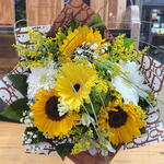 Gerbera - 3 Stk. sólidago - 3 Stk. girassol - 3 Stk. vivaz - 3 Stk. margarida verde - 1 Stk.
