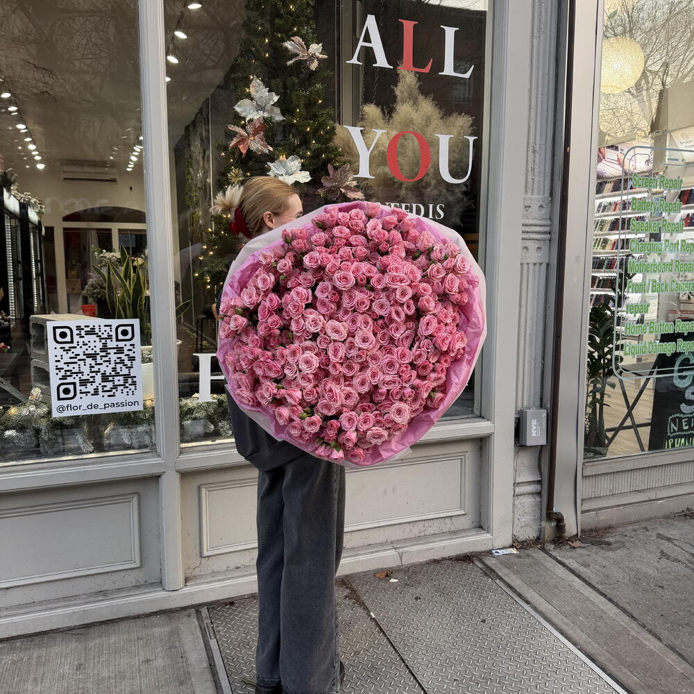 Mono-Bouquet aus 101 rosa Sprayrosen