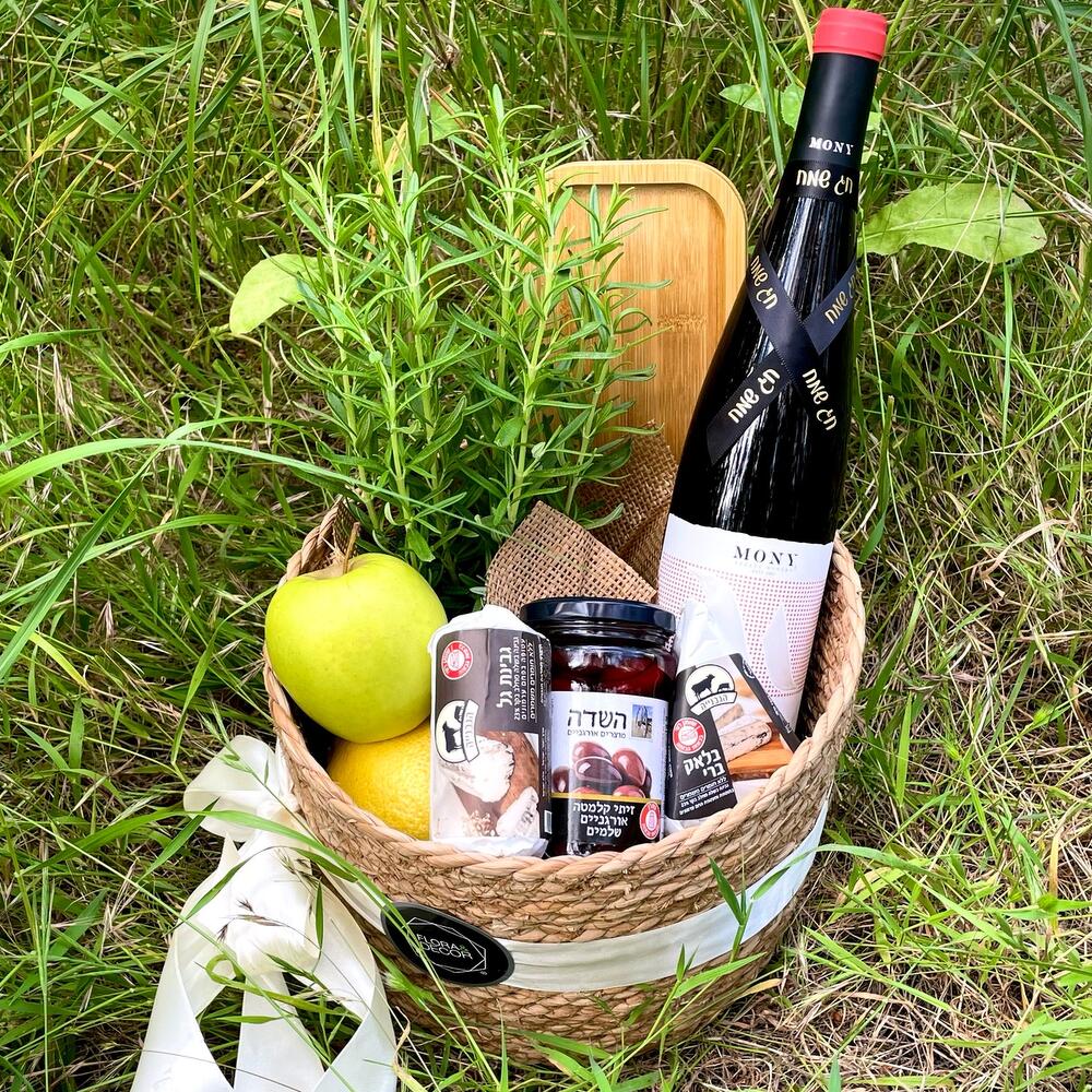 FloraDecor has specially prepared for you kosher sets for any occasion from the best Israeli manufacturers at affordable prices! The large basket includes: Muscat wine from the Moni family winery 750 ml A jar of organic oils from Ha-sade company Brie cheese from Hagabaniya boutique cheese factory 125 g Seasonal fruits Kalanchoes Home Flower A holiday card