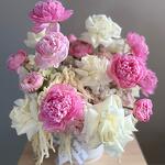 Ribbon - 1 Stk. Hydrangea - 6 Stk. Box - 1 Stk. Pfingstrose - 15 Stk. rose - 10 Stk.