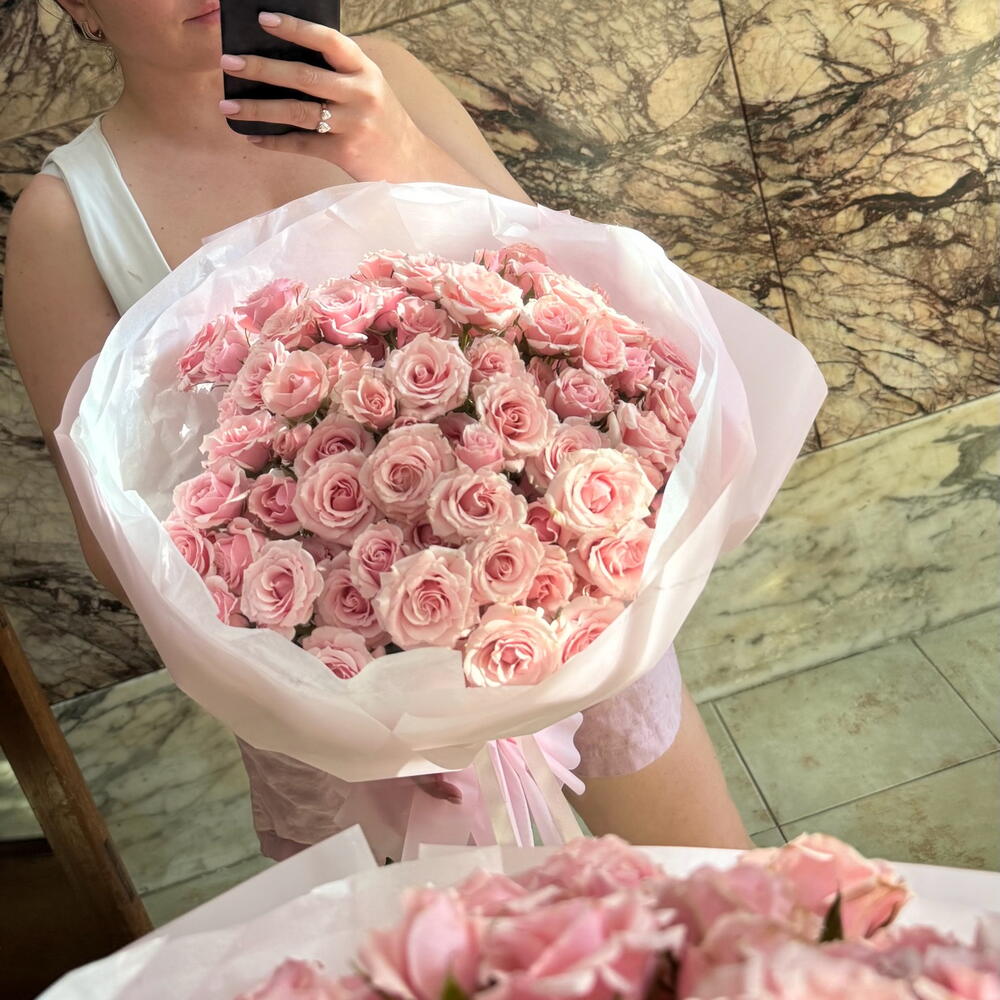 Очень красивый букет доставили за город. Причем я не знала адреса и телефона в стране получается, знала только имя в мессенджере, они без проблем написали и уточнили адрес.