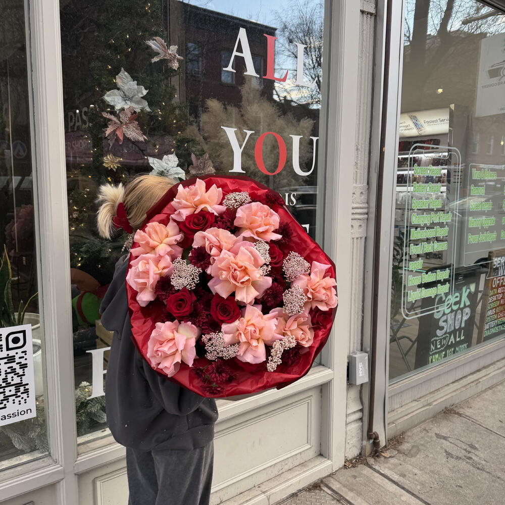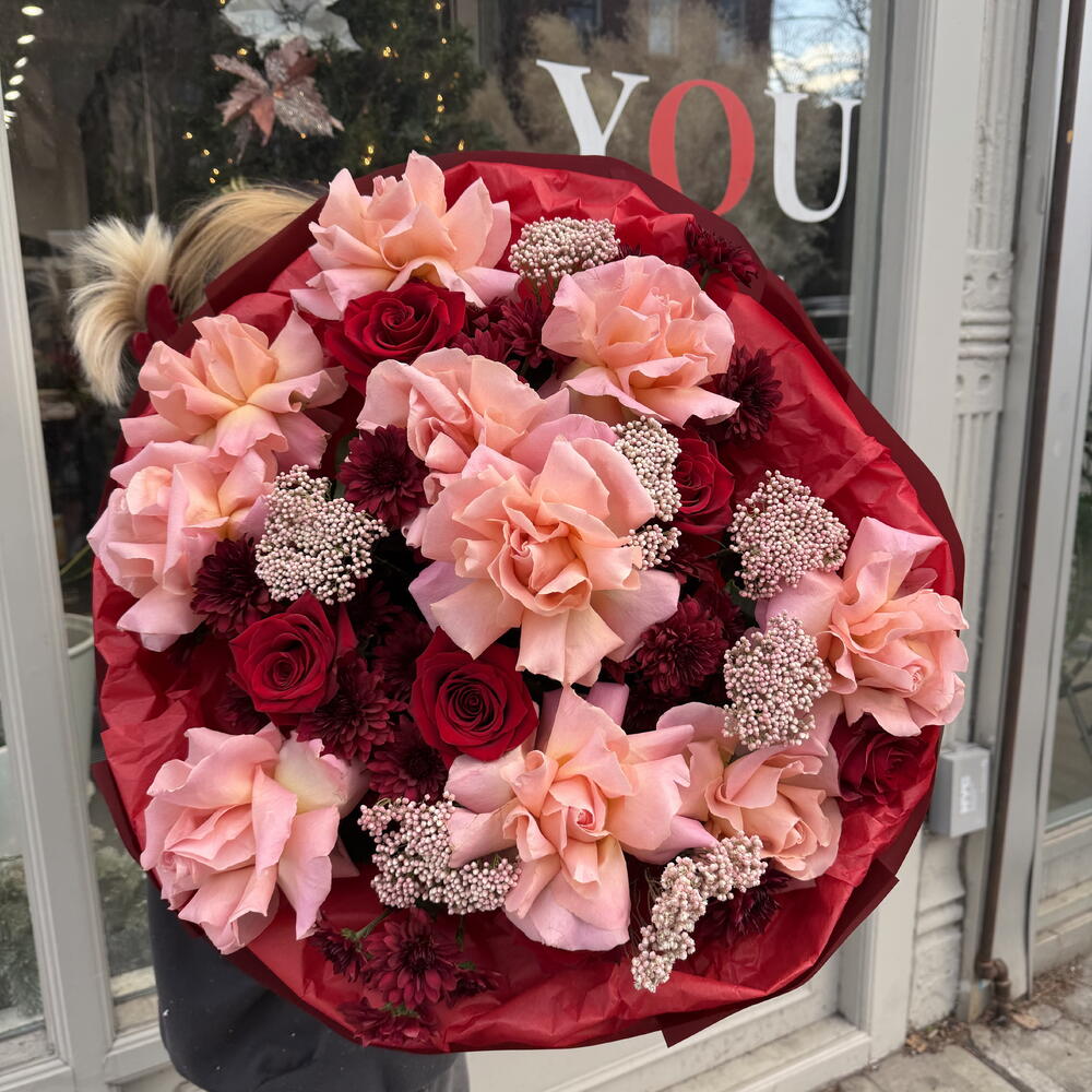 Make a bold impression with our Red Statement Bouquet, a sophisticated arrangement that combines the timeless elegance of French roses with the delicate texture of rice flower, vibrant explorer roses, and striking red daisies. This expertly curated composition balances classic romance with contemporary flair, creating a striking focal point for any space. Perfect for expressing passion, celebrating milestones, or commanding attention at special events, this bouquet delivers visual impact through thoughtful color harmony and varied bloom textures that ensure lasting beauty and visual interest.