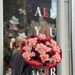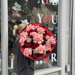 Букет красивый получился. Доставили немного позже назначенного времени, не критично для нас это было. Фото отчет сделали быстро. Доставка считаю дорогая, плюс большие розы не первой свежести были.