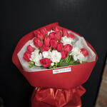 Ein eleganter und ausdrucksstarker Strauß für alle, die Stil lieben. Zarte weiße Freesien verleihen ihm Leichtigkeit und einen raffinierten Duft, während die leuchtend roten Tulpen einen markanten Akzent setzen. Perfekt als Firmengeschenk, zum Geburtstag oder als stilvolles Dekorationselement. Zusammensetzung: Rote Tulpen, weiße Freesien Ein schlichter und dennoch ausdrucksstarker Strauß für alle, die Wert auf Stil legen. Weiße Freesien verleihen ihm Leichtigkeit und einen dezenten Duft, während rote Tulpen einen unverwechselbaren Akzent setzen. Perfekt als Firmengeschenk, zum Geburtstag oder als stilvolle Dekoration. Zusammensetzung: Rote Tulpen, weiße Freesien