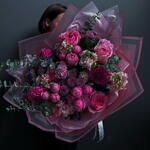 Rich Kiss (peony spray roses, stock, roses, eucalyptus)