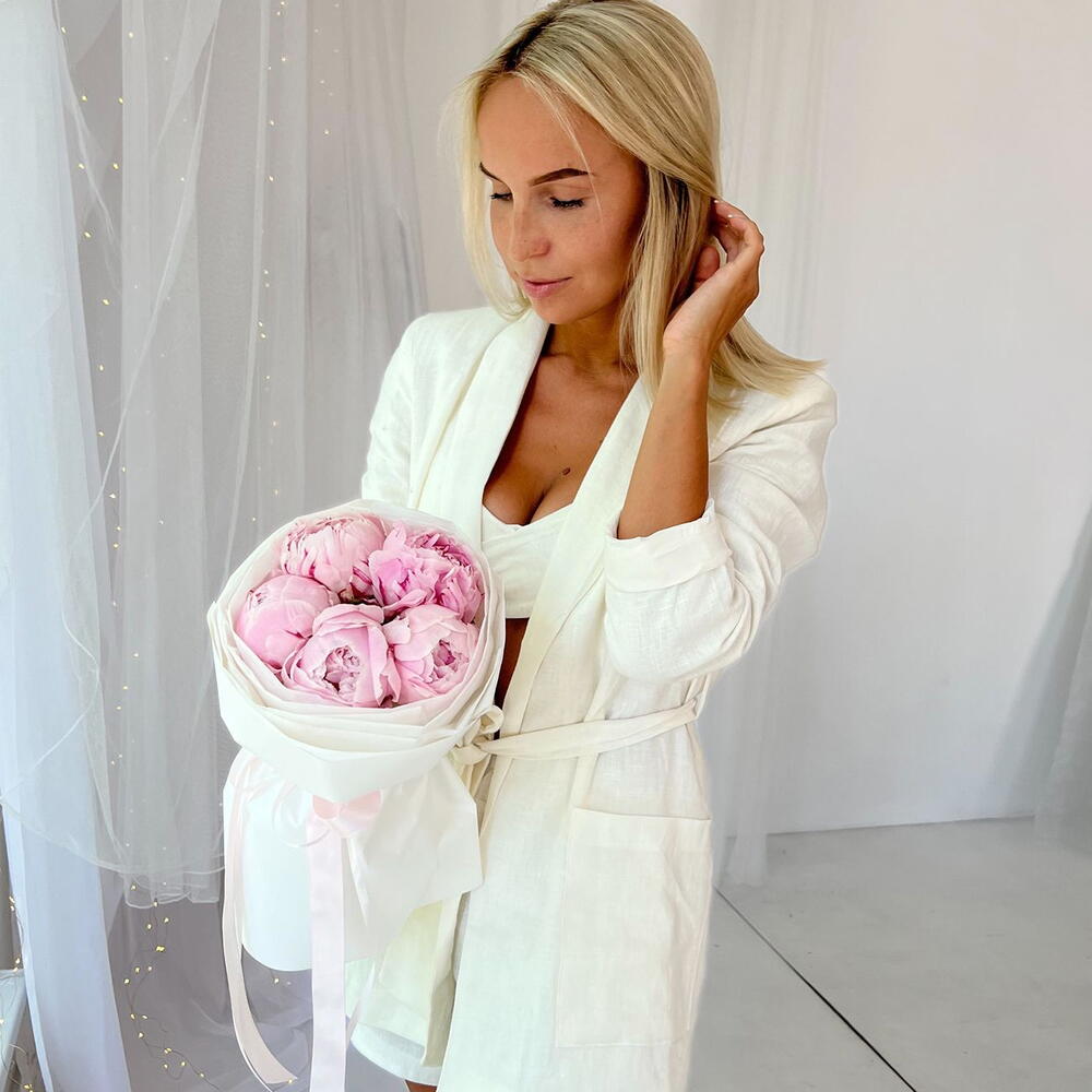 Розовое облако из 5 пионов «Marseille»