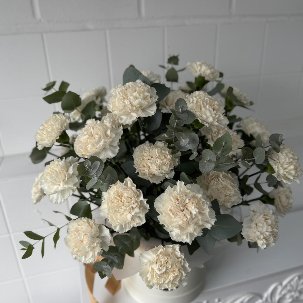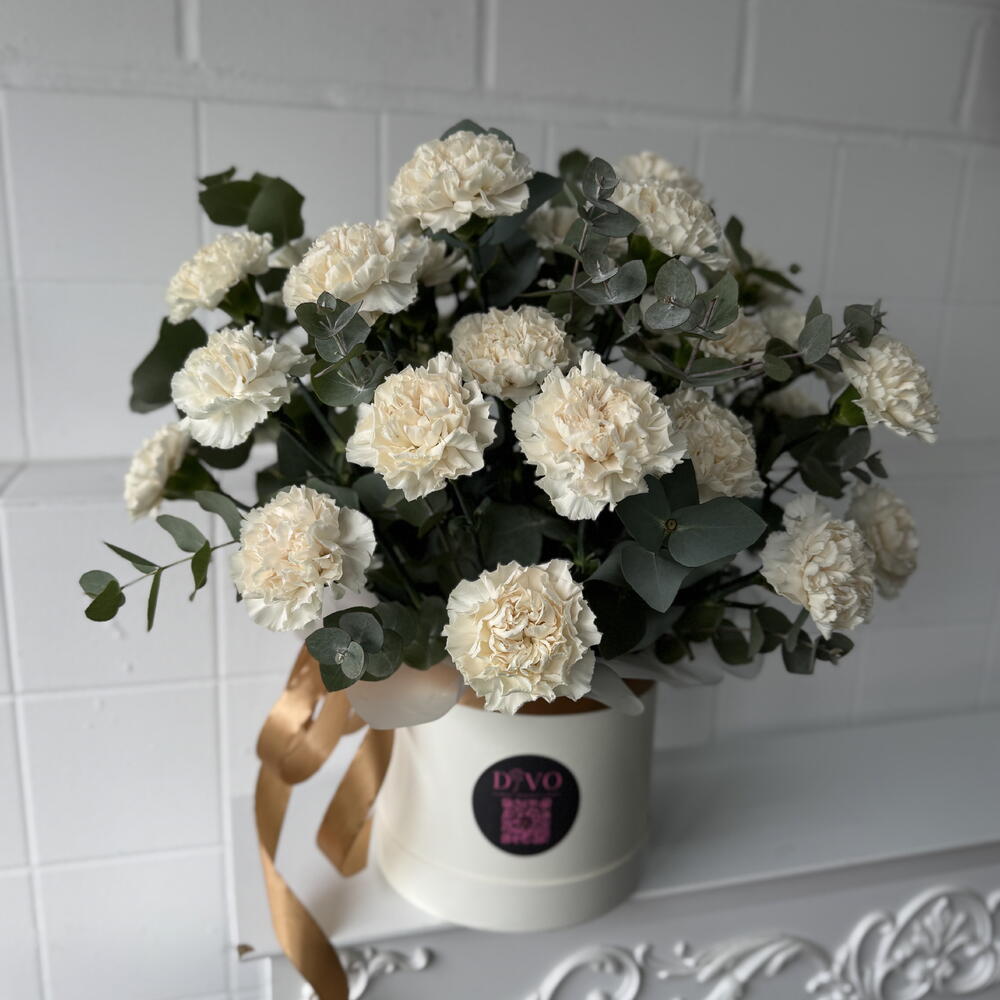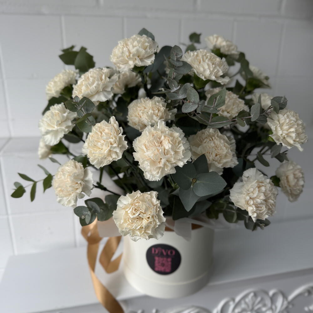 Satin ribbon - 1 Stk. Eucalyptus - 15 Stk. Gewürznelke - 30 Stk. a card with your wishes - 1 Stk. Hutschachtel - 1 Stk.