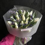 Ein frischer, ausdrucksstarker und unglaublich stilvoller Frühlingsstrauß! Strahlend weiße Tulpen harmonieren perfekt mit leuchtend violettem Strandflieder (Limonium) und bilden einen wunderschönen Farbkontrast. In edles, mattiertes Papier gewickelt, besticht dieses Arrangement durch seine moderne und elegante Ästhetik. Die perfekte Wahl für Muttertag, Frauentag, Geburtstage oder einfach, um den Frühling zu feiern. Tags: Weiße Tulpen, Violetter Strandflieder, Strandflieder, Frühlingsstrauß, Elegante Blumen, Muttertag, Frische Tulpen, Stilvoller Strauß