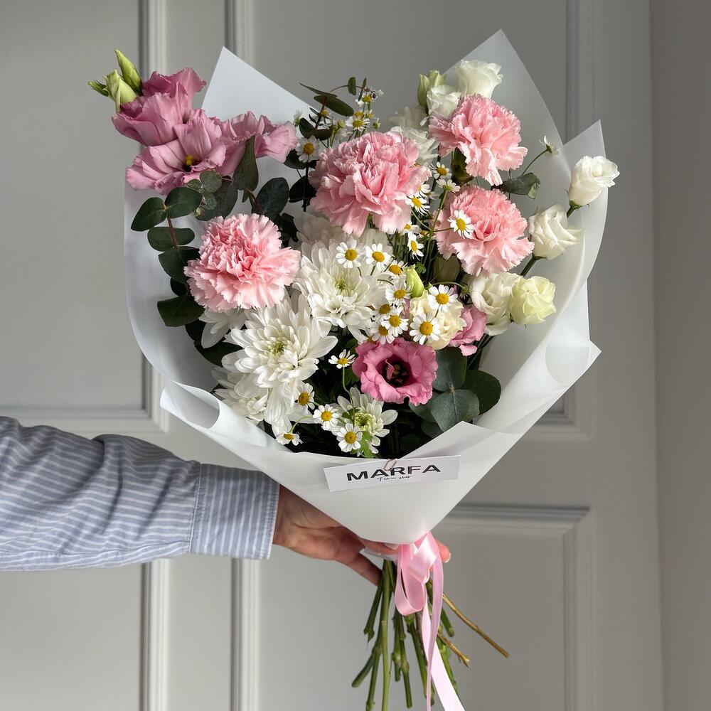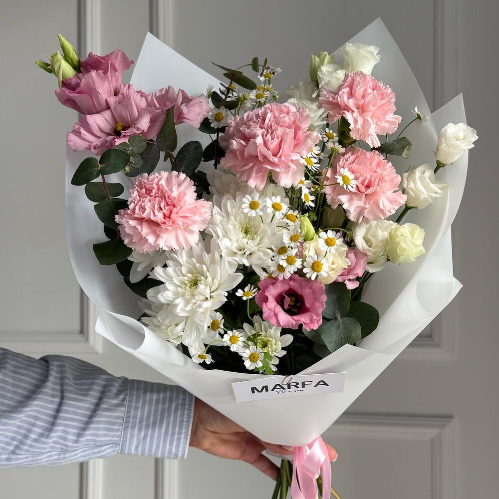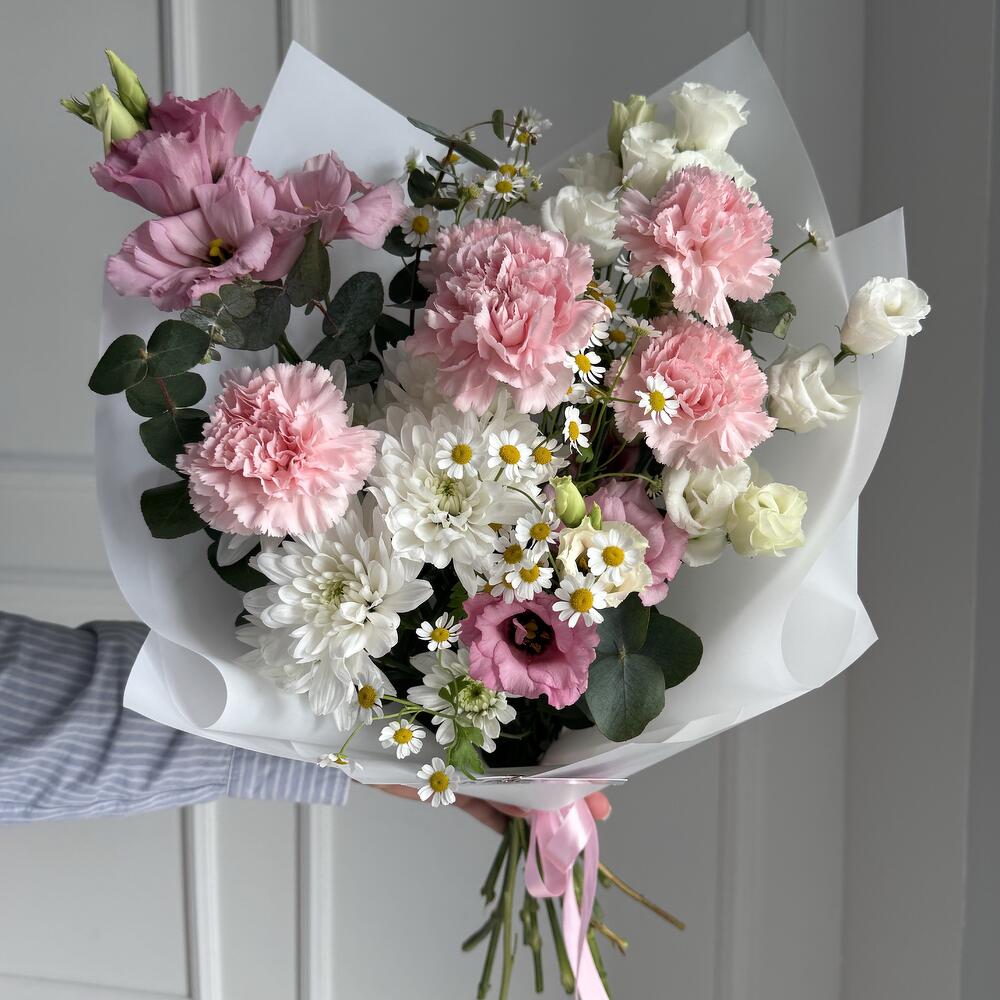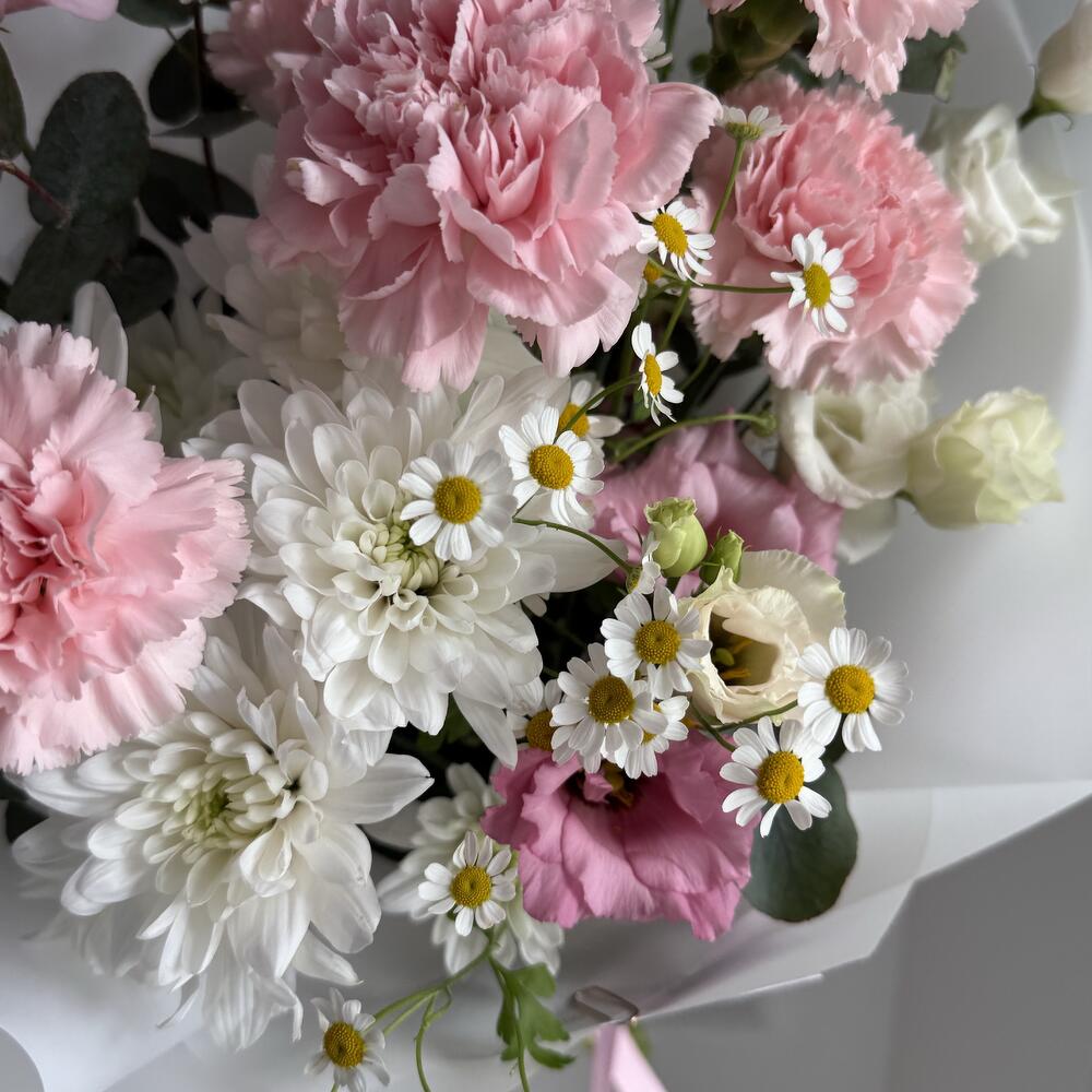 Elegant tender bouquet with fluffy matricaria. A perfect gift for any ocasion with fast delivery in Belgrade.