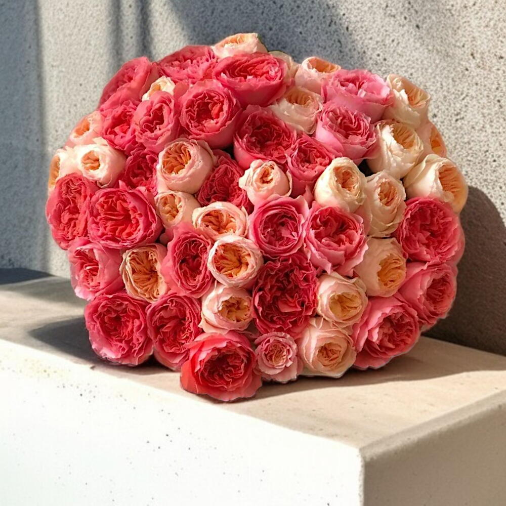Its a perfect gift! Beautiful various shades and shapes peony garden roses, nicely packaged in organic packaging. If you have any wishes, be sure to leave them in the comments. *IMPORTANT! ATTENTION! The photo is provided as an example, the shade (type) of the flower may change depending on the season and the range of flowers available at that time. The price is indicated for 21 piece of flower blossom. The picture shows 15 pieces of flower blossoms.