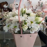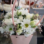 weiße Eustoma - 3 Stk. Blumenzubehör - 3 Stk. weiße Chrysantheme - 2 Stk.