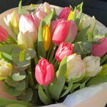 Eukalyptus - 3 Stk. Dekorpapier - 1 Stk. Tulpenmix - 25 Stk. Handtasche - 1 Stk.