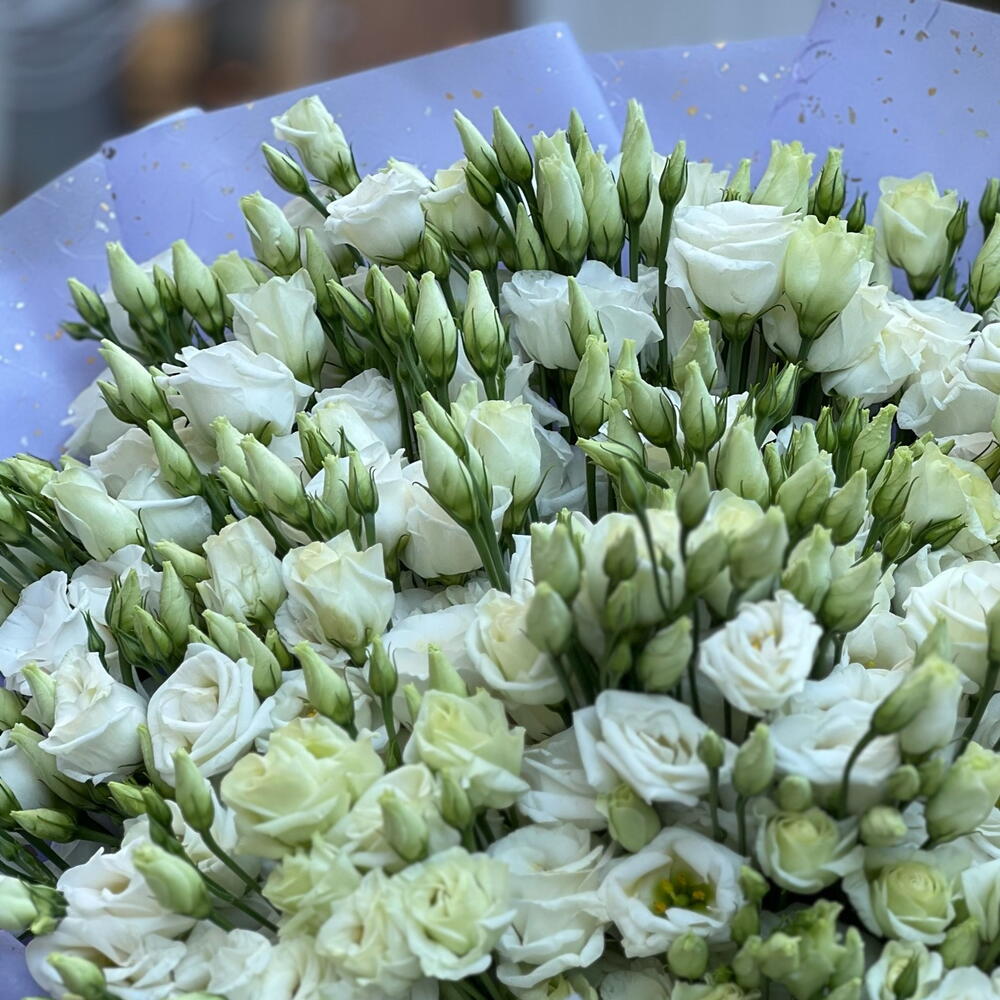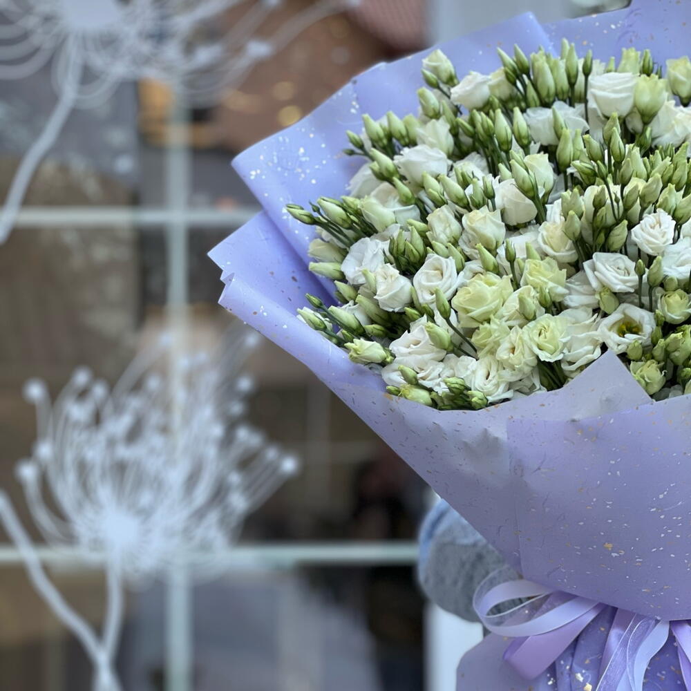 Eustoma - 35 Stk. Satinband - 2 Stk. Koreanische Verpackung - 6 Stk.