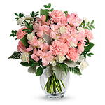 Whisper Soft Bouquet (carnations, alstro + vase)