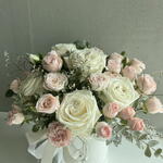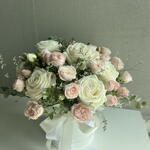 White rose - 7 Stk. Lisianthus - 2 Stk. greenary - 3 Stk. rosa Rosen - 7 Stk.