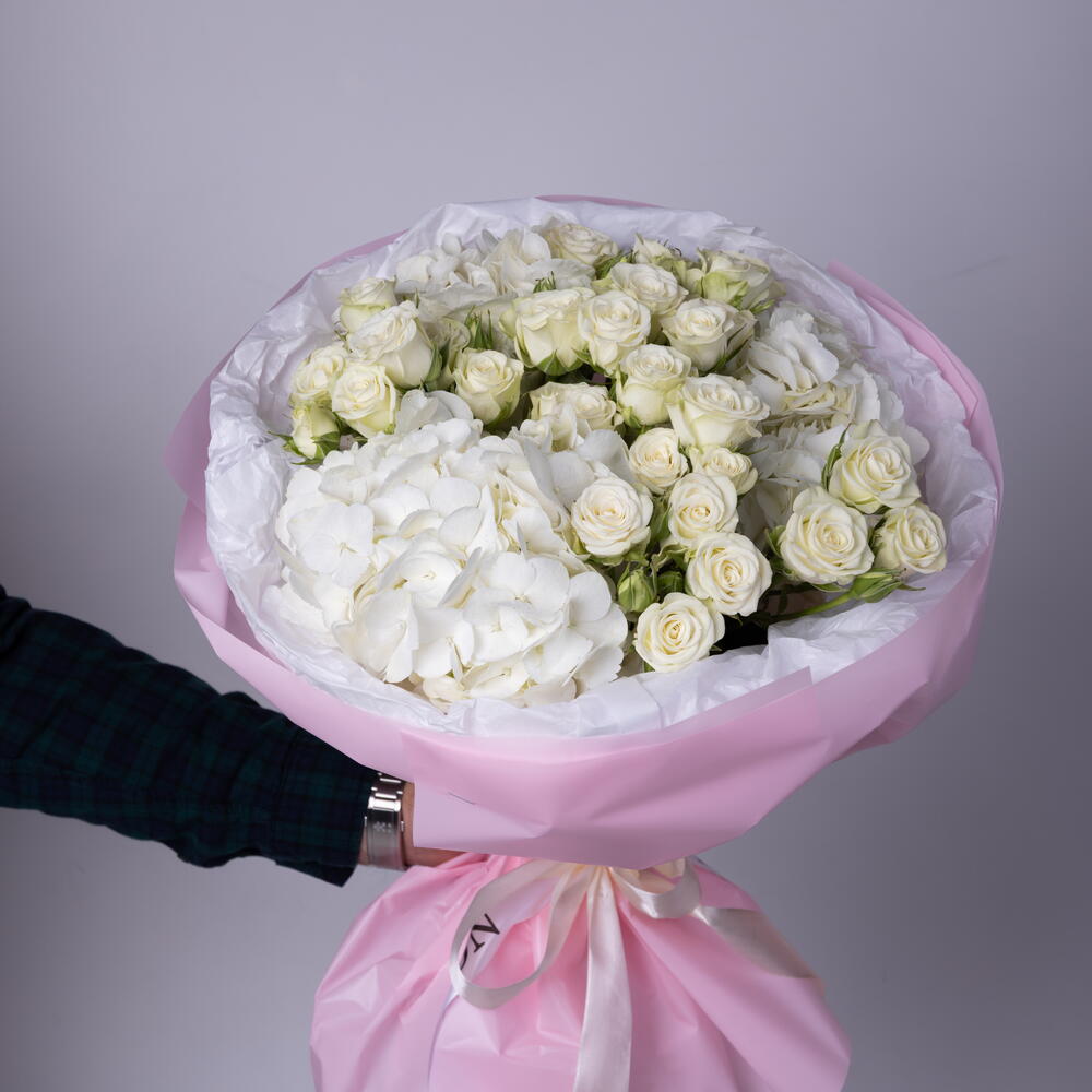 weiße Hortensien - 3 Stk. weiße Sprayrosen - 10 Stk.