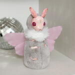 Interior toy, not intended for children. Made of artificial fur and polymer clay, paws move. Fragile, do not injure! if you fill it well with light the wings glow a little blue in the dark