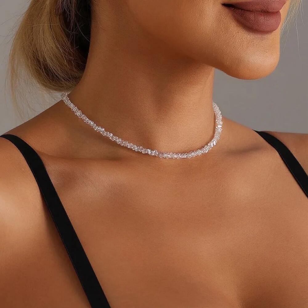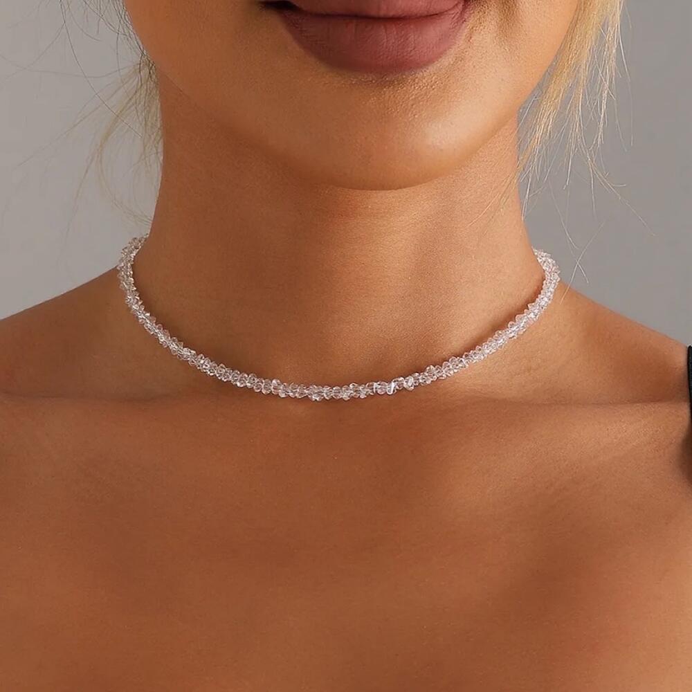 Handcrafted diamond glass choker with high quality stainless steel clasp.