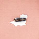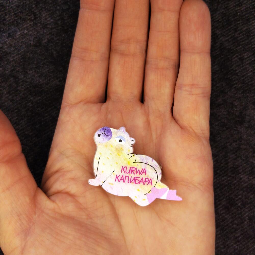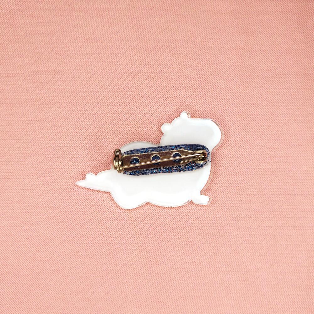 Based on an original sketch. Materials: Recycled plastic, waterproof UV printing. Size: 40 × 30 mm. Safety: Locking clasp minimizes the risk of loss. A great accessory to add a touch of personality to your outfits while ensuring long-lasting quality!