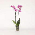 Фаленопсис, также известный как лунная орхидея или орхидея-бабочка, произрастает в тропических лесах Юго-Восточной Азии, на Филиппинах и в Австралии, где он в основном растет на деревьях. Орхидея-бабочка чрезвычайно популярна, и нетрудно понять, почему. Орхидея не только цветет изящными цветами красивых оттенков, но и проста в уходе, а период цветения может длиться до трех месяцев. Фаленопсис также относится к ночным видам, которые выпускают несколько цветочных ветвей в год. Фаленопсис пурпурный цветет красивыми фиолетовыми цветами на двух цветочных ветвях.
