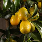 Кумкват или золотой апельсин - это необычное китайское деревце с гладкой листвой, одеревенелым стволом и яркими съедобными плодами оранжевого цвета. Тропическое растение относят к семейству Рутовые. Овальные плоды золотого апельсина имеют приятный цитрусовый аромат, на вкус они кисло-сладкие: кумкват употребляют прямо со сладкой кожицей, которая создает приятный контраст с внутренним кисловатым соком и мякотью. Помимо вкусных плодов и приятного аромата, Кумкват обладает еще одним преимуществом - отличное озеленение пространства. Потому что, даже в отсутствие плодов, комнатное растение не теряет свою привлекательность, благодаря глянцевой тёмно-зеленой листве.