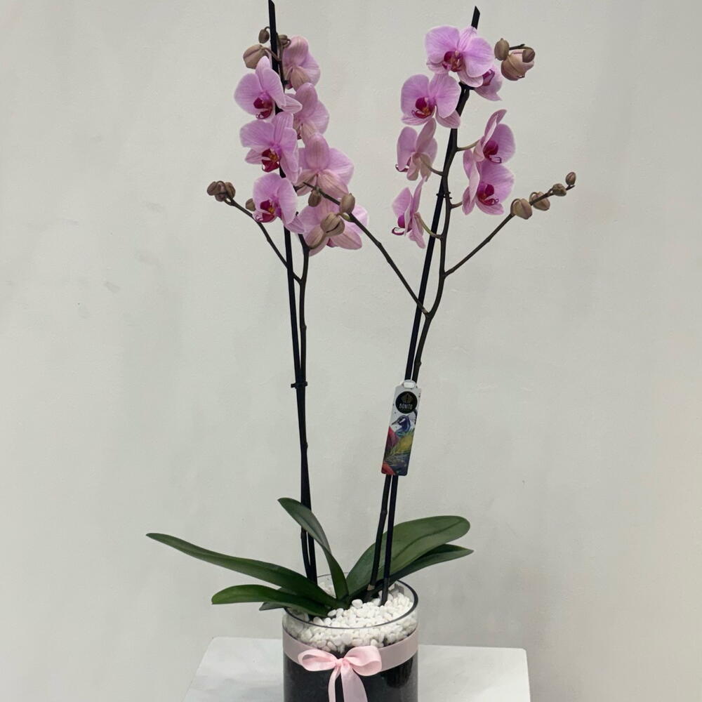 نبات الاوركيد الوردي الفاخر مع فازه شفاف