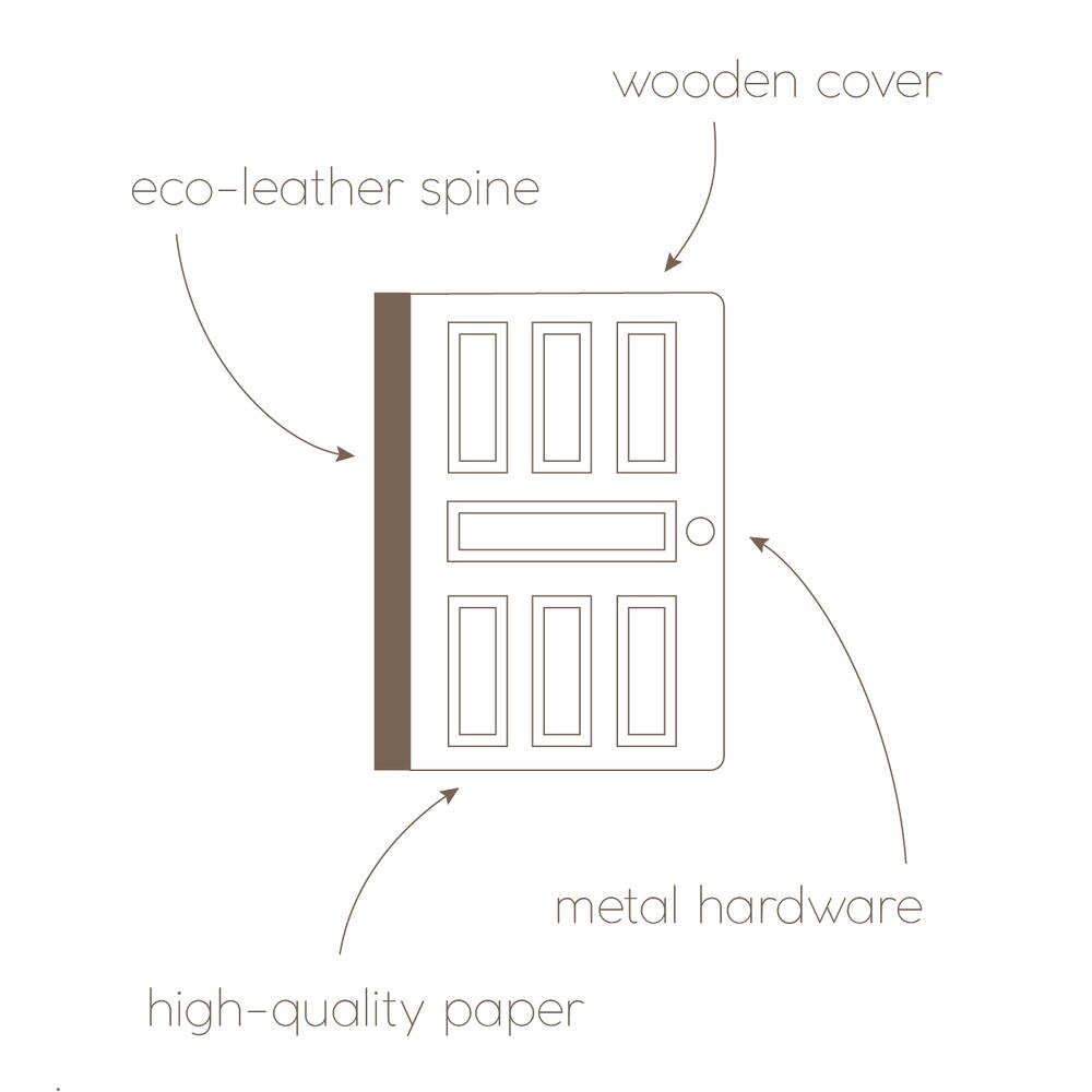 This journal is based on a real Belgrade door, which you can find in the city (you can find the address on the back). A unique handmade notebook with a door-shaped cover is a great gift for an artist, someone who sketches, takes notes, keeps a diary or day planner, or any lover of unusual gifts. THE COVER OF THE JOURNAL We make covers from high-quality plywood, paint them by hand with acryl paints and then cover them with water-base varnish. That is why the texture of every journal cover is unique. The hardcover works as a hard surface to let you draw or make notes anywhere you get inspired. The plywood cover protects paper as well. ECO-LEATHER BINDING For binding we use high-quality eco-leather. It is wear proof and pleasant to touch. PAPER We use fine designer eco paper Flora Anice that is 30% recycled and contains plant inclusions, so each page looks unique and textured. Еhe color of the paper is soft cream. It is suitable for pencils, pens and liner. The pages are padded, so it is easy to unfold the journal flat and write and draw in it. The journal has 64 sheets (128 pages). HARDWARE We use metal hardware to make our journals look prettier and smarter. If you have questions left or you want to customize your purchase, feel free to contact me and I will try to make your dream journal :)