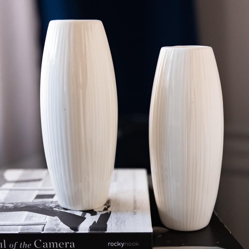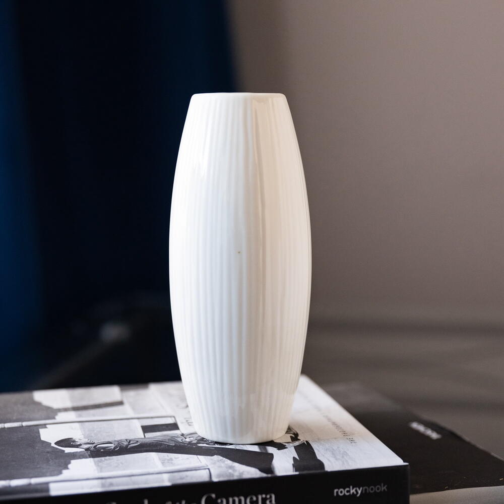 Ceramic Vase in Scandi Style - suitable for flowers or any other decorations. The modern and timeless, but minimalist design is an absolute eye-catcher for any stylish home environment.Their special, unique shape makes them stand out. Makes a perfect gift for any fans of the Scandinavian or Nordic Style. DETAILS -Color: White -Material: Ceramic -Vase Size: 18.2cm x 4cm