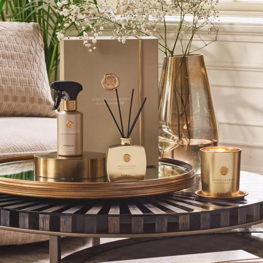This wonderful gift box is the perfect present for a friend, a family member, or simply for pampering yourself! The Sweet Jasmine gift set includes a scented candle, mini reed diffuser, and room spray. Fresh, vibrant fruity top notes of citrus and berries are followed by elegant florals such as peony and lily of the valley. Sandalwood adds warmth and sophistication to the fragrance. After use, the gift box is perfect for storing photos, letters, or other keepsakes.