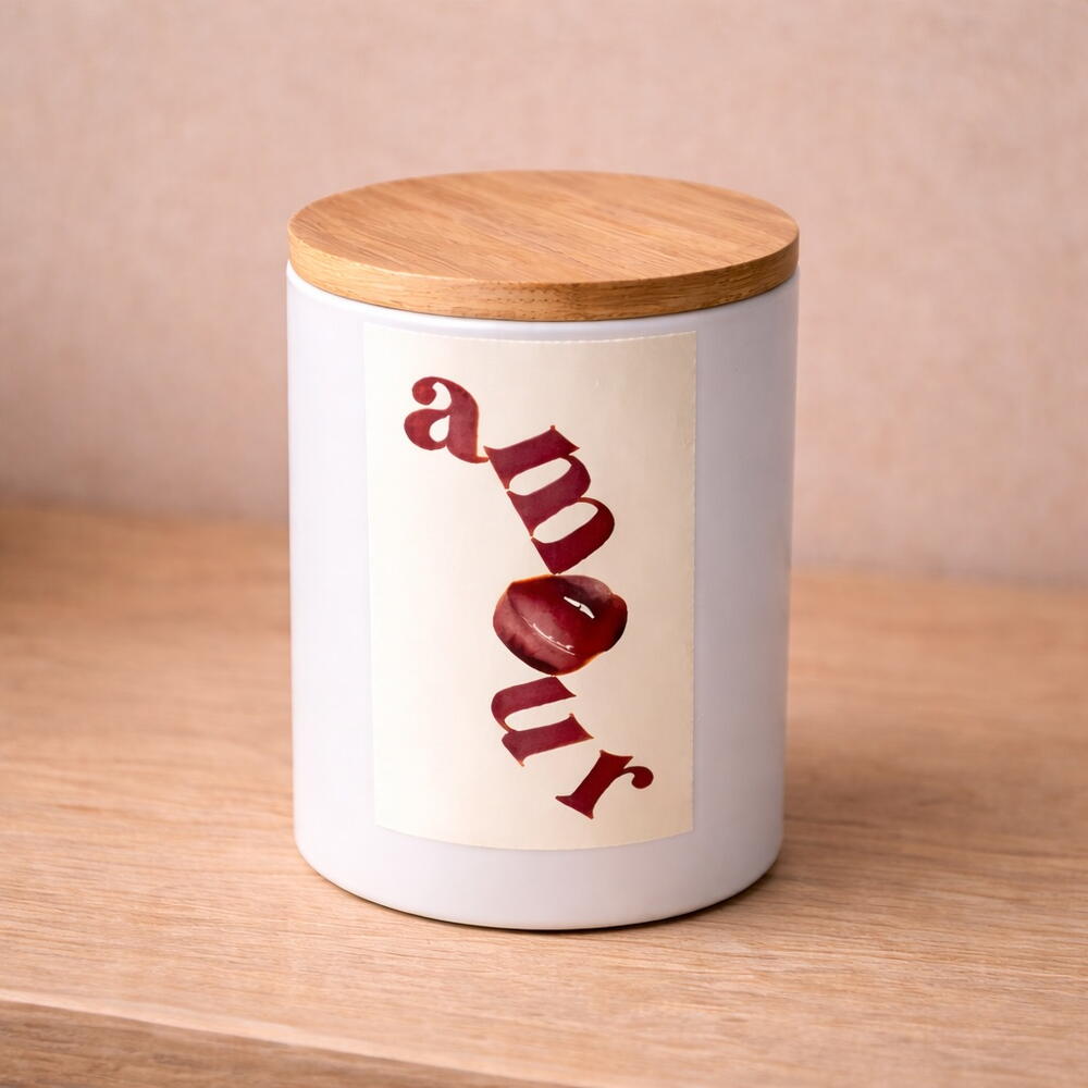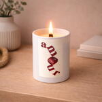 The sticker has been selected for demonstration and will be available to choose during purchase. AMOUR Soy Candle – Vanilla Sandalwood, 200 ml, wooden wick The natural AMOUR soy candle with a vanilla and sandalwood scent creates a warm, relaxing atmosphere in any interior. Made from eco soy wax, it burns cleanly and evenly. The wooden wick gently crackles while burning, adding a unique ambiance and sense of comfort. ⸻ Product features: • Capacity: 200 ml • Scent: Vanilla Sandalwood • Wax: 100% soy, eco-friendly • Wick: wooden • Glass container (white or black) • Wooden lid • Ideal as a gift 🎁