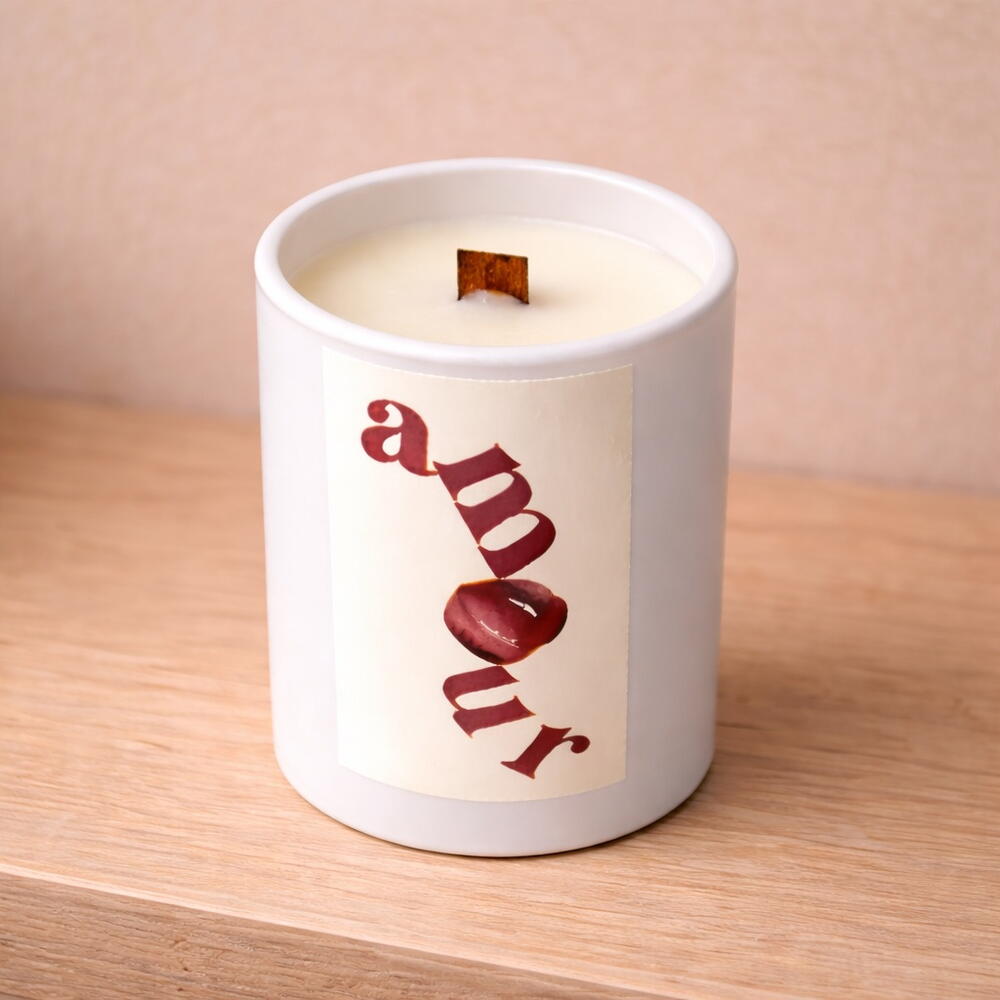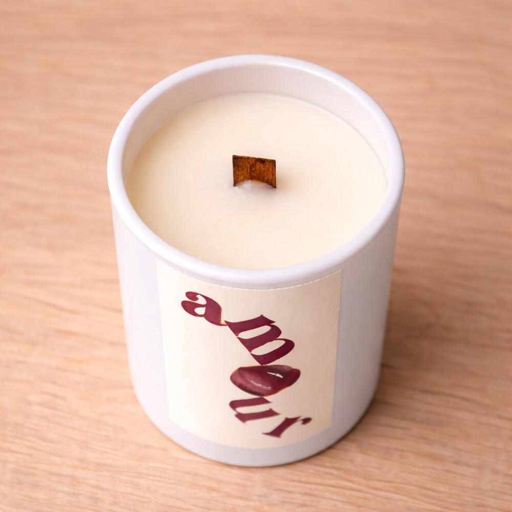 Soy candle AMOUR – Vanilla Sandalwood, 200 ml, wooden wick
