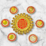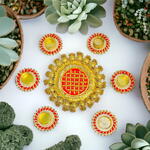 A set of 6 Small candle holders and 1 central rangoli. Festival Decoration Item Single candle holders comes in beautiful gift box You can gift someone for diwali Or Can use to decor your Diwali Or use it as a return gift DECORATION Item 💫 For home Office Karwachauth, Pooja, Diwali, wedding, Haldi, Mehndi etc 👇👇👇👇👇👇👇👇👇👇👇👇 This is a Multi-Purpose Item used for : ▪︎Weeding Decoration ▪︎Haldi and Mehndi Decoration ▪︎Diwali Decoration ▪︎House Entrance Decoration ▪︎Karwachauth Best quality product