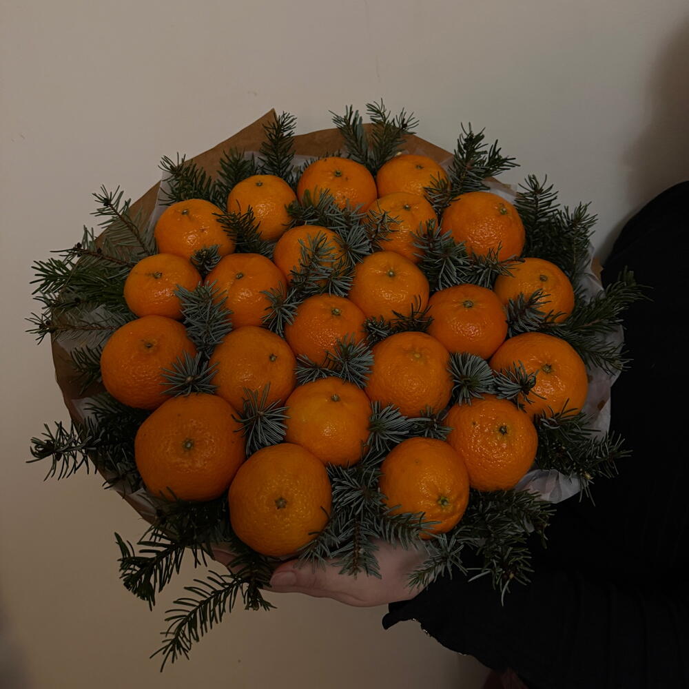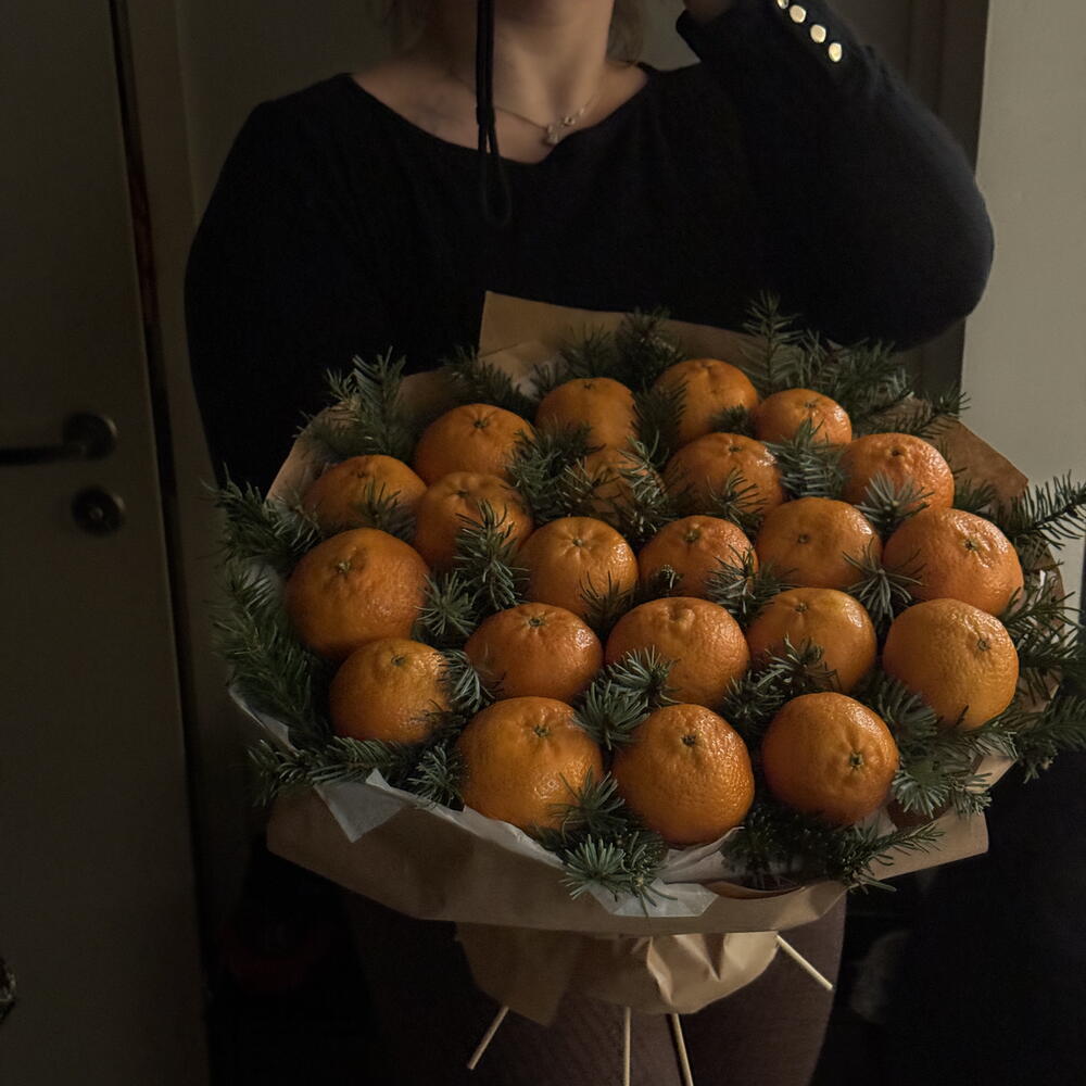 🇫🇮 Kuvaus: Iloinen ja tuoksuva joulukimppu, jossa yhdistyvät tuoreet mandariinit ja tuoksuvat kuusen oksat! 🍊🎄 Kauniisti sidottu luonnonmateriaaleihin, tämä ainutlaatuinen sekoitus tuo joulun tuoksut ja värit suoraan kotiisi. Täydellinen lahja, joka herättää joulun tunnelman! ✨🎁 🇬🇧 Description: A joyful and fragrant Christmas bouquet combining fresh tangerines and aromatic fir branches! 🍊🎄 Beautifully wrapped in natural materials, this unique mix brings the scents and colors of Christmas straight to your home. The perfect gift to awaken the holiday spirit! ✨🎁 🇷🇺 Описание: Радостный и ароматный новогодний букет, сочетающий свежие мандарины и душистые еловые веточки! 🍊🎄 Красиво упакованный в натуральные материалы, этот уникальный микс приносит запахи и цвета праздника прямо в ваш дом. Идеальный подарок, чтобы пробудить новогоднее настроение! ✨🎁