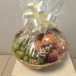 Seasonal fruits used to create the fruit basket. Mixed nuts and cashew nuts, as well as dried fruits to complete the fresh and healthy basket.