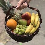Basket - 1 pcs pear - 2 pcs apple - 3 pcs banana - 4 pcs orange - 5 pcs ananas - 1 pcs grapes green - 500 g