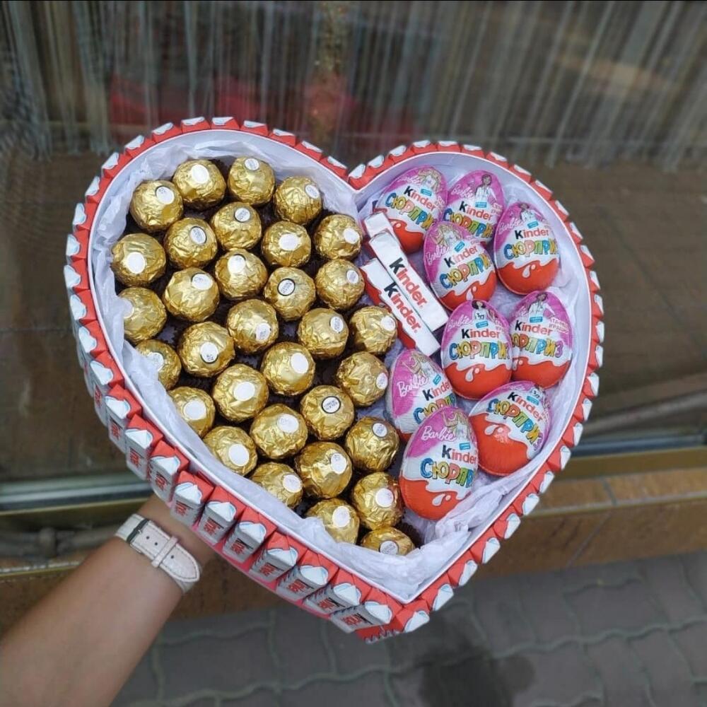 Kinder Surprise - 9 pcs Ferrero rocher - 32 pcs kinder sticks - 64 pcs heart box - 1 pcs