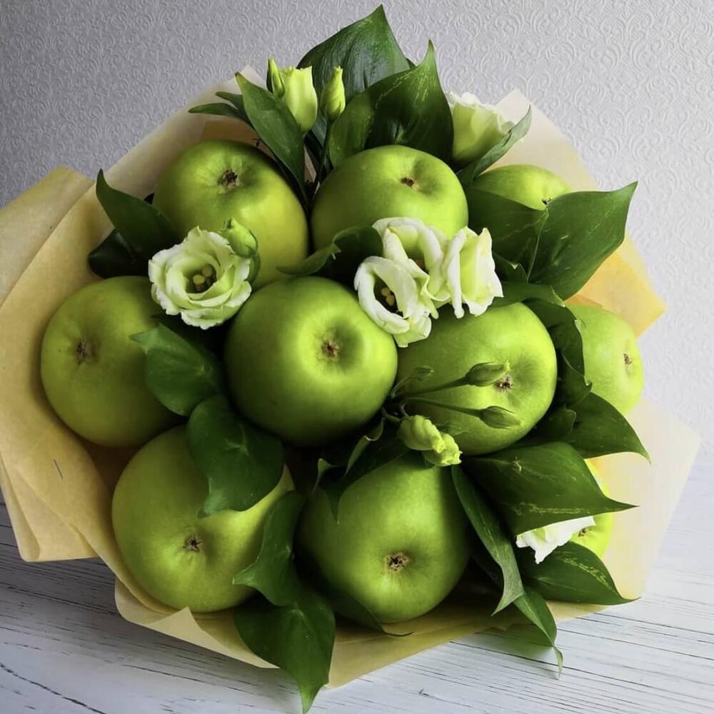 Lisianthus - 1 pcs rohelist - 5 pcs package - 2 pcs pael - 1 pcs õun - 9 pcs