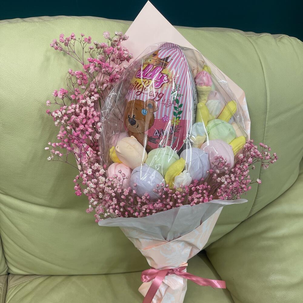 Gypsophila - 3 pcs marshmallow - 12 pcs package - 2 pcs sefiir - 13 pcs üllatusmuna suur - 1 pcs