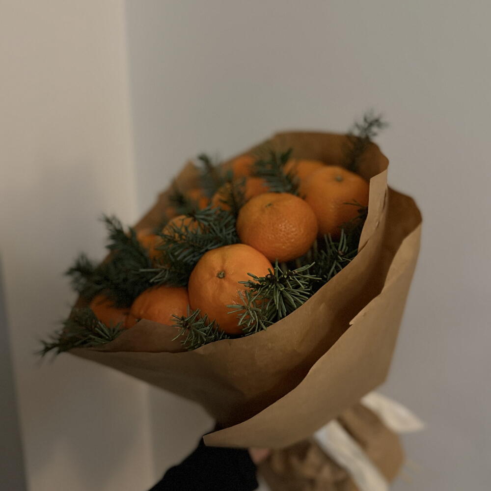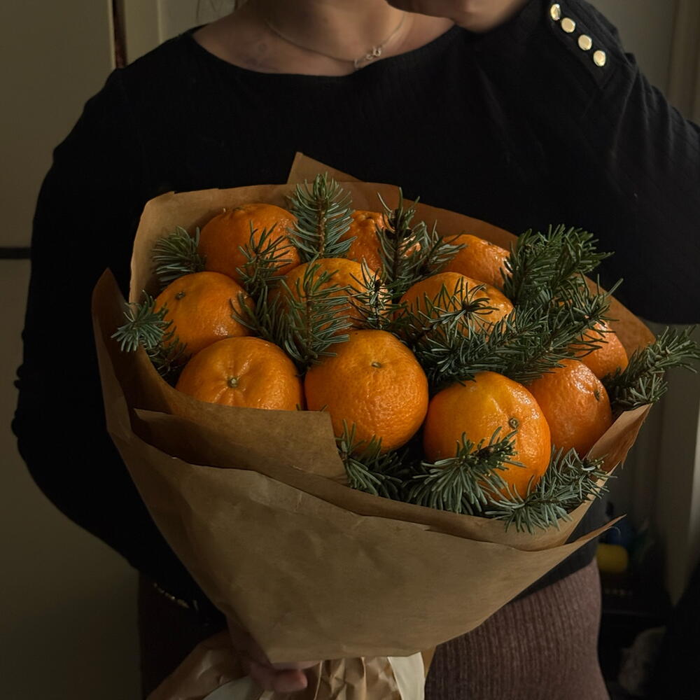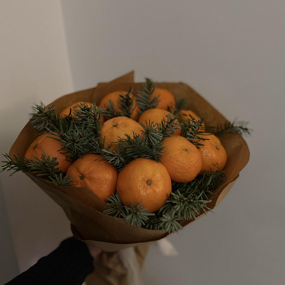 🇫🇮 Kuvaus: Iloinen ja tuoksuva joulukimppu, jossa yhdistyvät tuoreet mandariinit ja tuoksuvat kuusen oksat! 🍊🎄 Kauniisti sidottu luonnonmateriaaleihin, tämä ainutlaatuinen sekoitus tuo joulun tuoksut ja värit suoraan kotiisi. Täydellinen lahja, joka herättää joulun tunnelman! ✨🎁 🇬🇧 Description: A joyful and fragrant Christmas bouquet combining fresh tangerines and aromatic fir branches! 🍊🎄 Beautifully wrapped in natural materials, this unique mix brings the scents and colors of Christmas straight to your home. The perfect gift to awaken the holiday spirit! ✨🎁 🇷🇺 Описание: Радостный и ароматный новогодний букет, сочетающий свежие мандарины и душистые еловые веточки! 🍊🎄 Красиво упакованный в натуральные материалы, этот уникальный микс приносит запахи и цвета праздника прямо в ваш дом. Идеальный подарок, чтобы пробудить новогоднее настроение! ✨🎁